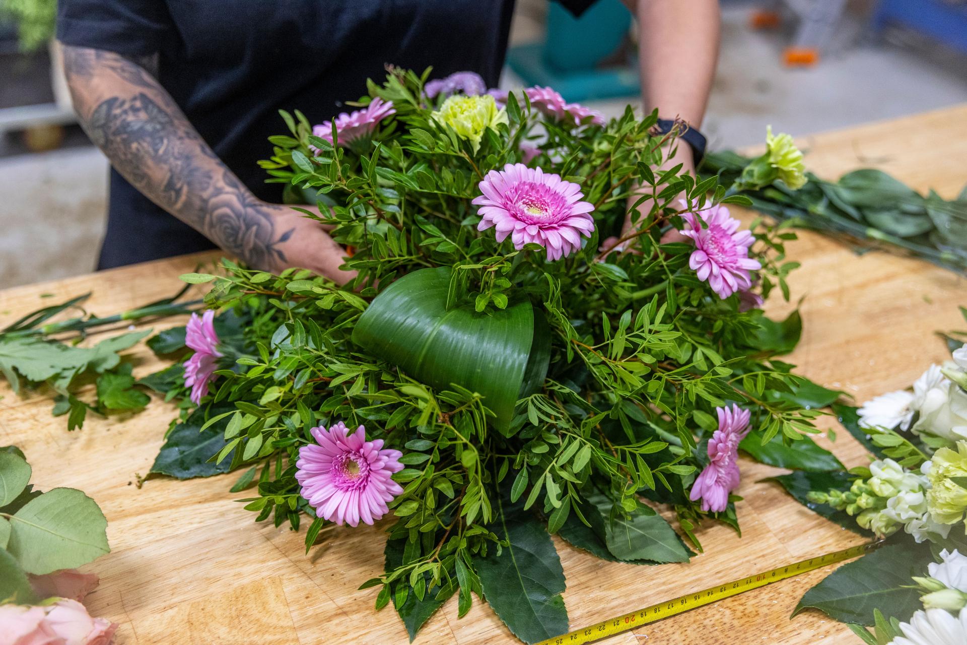 Het team bij Topgeschenken is dus een bonte mix van gezelschappen, waaronder ook bloemisten die de rouwstukken handmatig maken, maar daarnaast ook als orderpicker meelopen. Nieuwe medewerkers lopen tijdens hun onboarding direct een dag mee in de operatie. 'Dan zie je wat er gebeurt en waarom. We willen dat iedereen snapt waarvoor we het doen.' Dat geldt ook voor de bezorgers. 'We leggen uit dat ze het verlengstuk zijn van de persoonlijke boodschap. Wat ze doen, maakt een verschil voor de ontvanger. Die verbinding, dat snapt niet iedereen, maar het maakt ons uniek.'