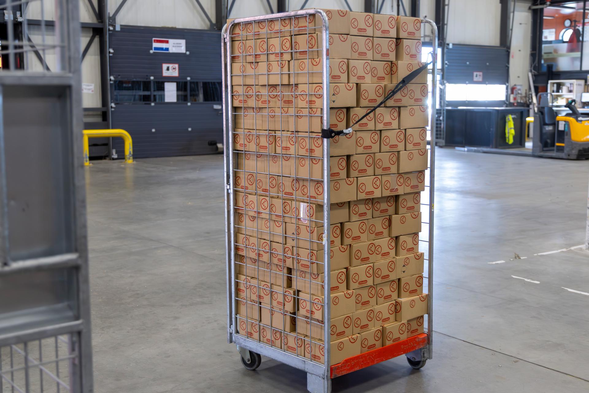 Nieuw is ook de sorteermachine. Alle pakketten gaan geautomatiseerd naar de juiste laan, gesorteerd op land en/of grootte van het pakket, waarna een medewerker ze verder op formaat sorteert en in een bepaalde rolcontainer legt.